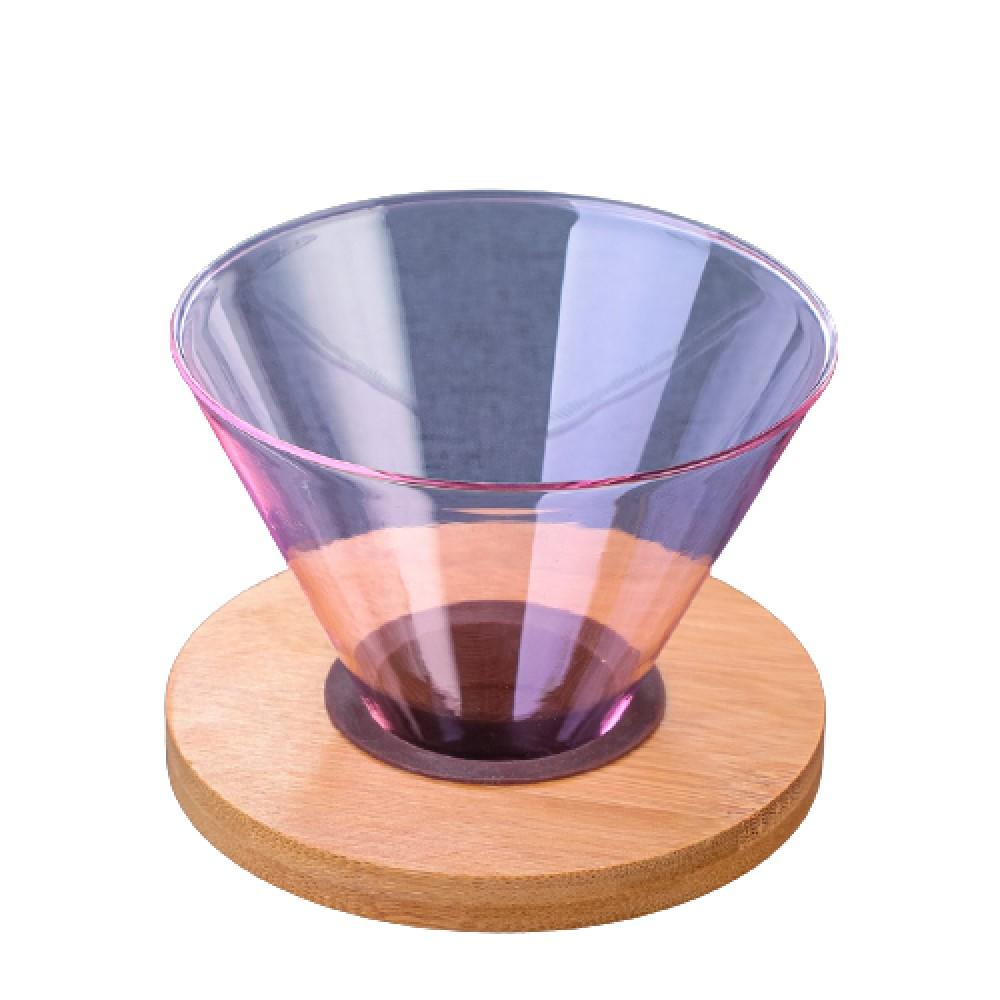 قمع زجاجي قاعدة خشبي 02 كهرماني